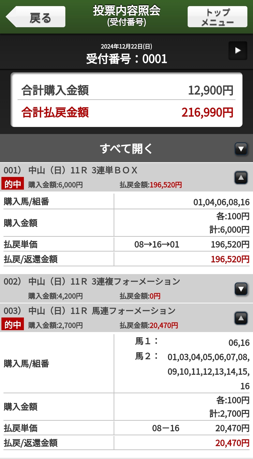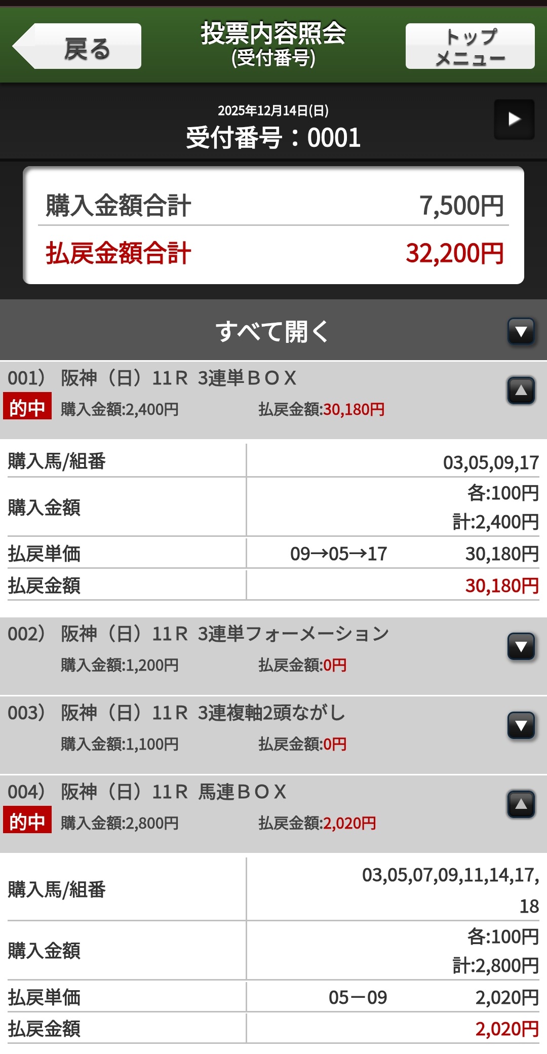 有馬記念 馬連20,470円 三連単196,520円 的中! |
