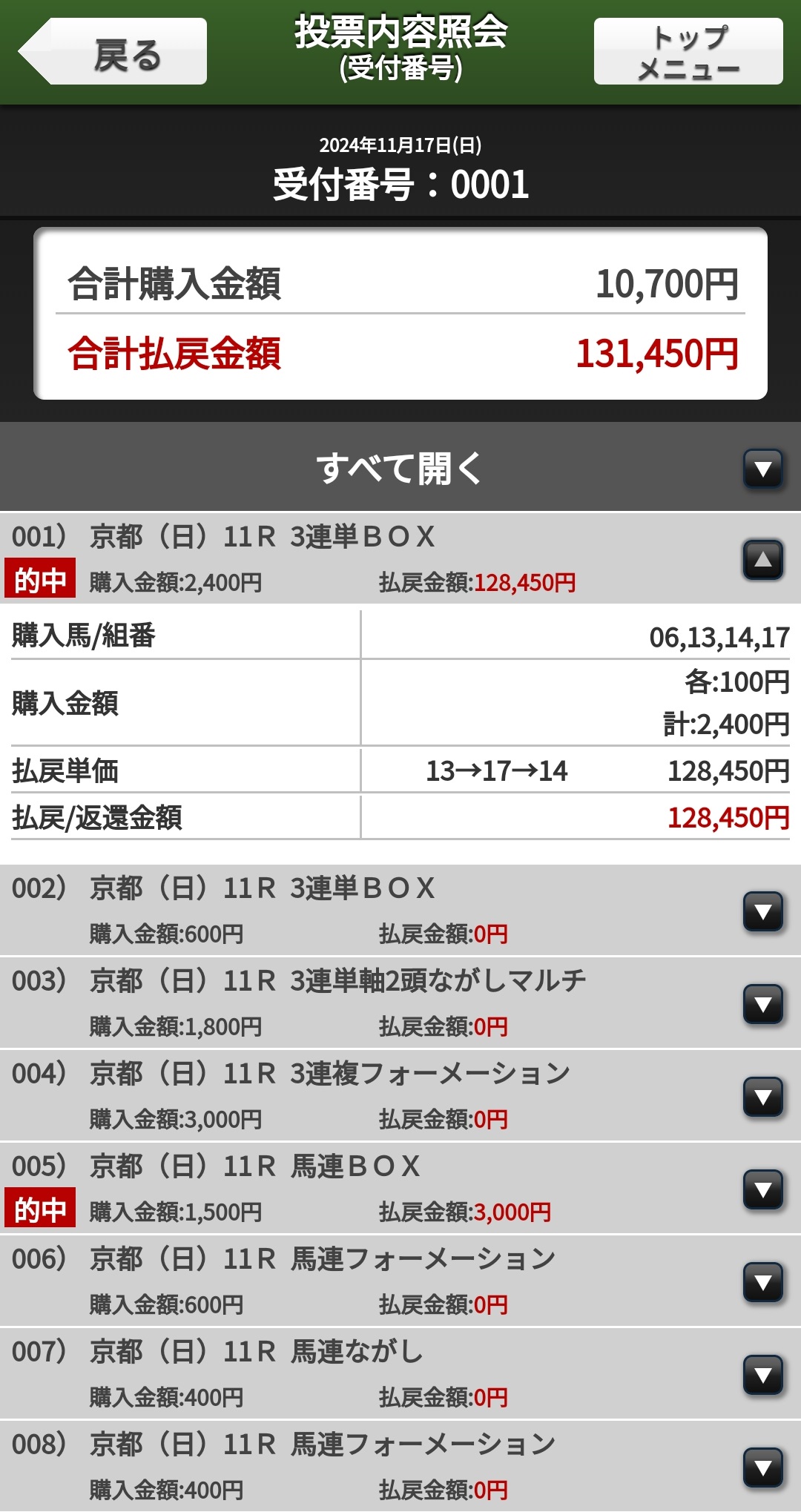 マイルCS 馬連3,000円 三連単128,450円 的中! |