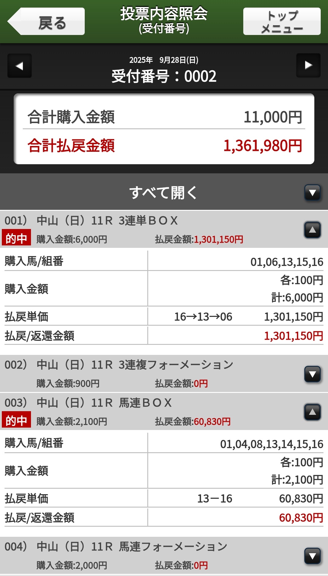 ホープフルS 馬連8,310円 三連複55,140円 的中! |